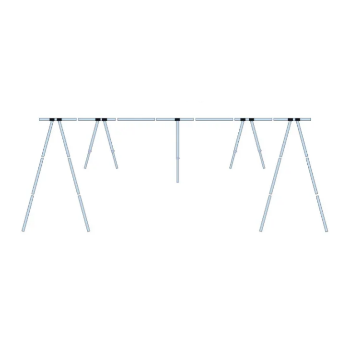Stativene har 4 ben som står ned på bakken, samt støtteben med justerbar lengde som plasseres oppi båten.